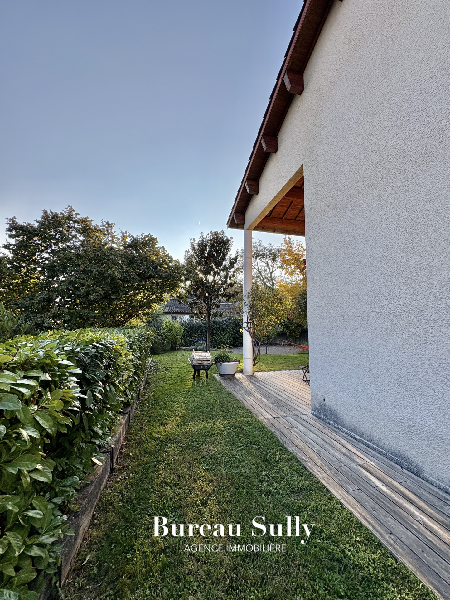 Miribel ( 01700 ) 15 mn de Lyon, Maison d'architecte de 1993 en parfait état de 148 M2 habitables édifiée sur un magnifique terrain de 1276 m2 piscinable, arboré & parfaitement orienté, sans nuisance, sans vis à vis, commerces & transports à proximité à pied, proche centre de Lyon 10 km , de la gare SNCF Lyon Part Dieu 15 mn.